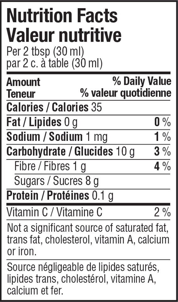 Ingredients: PURE MAPLE SYRUP, GLUCOSE, SUGAR.